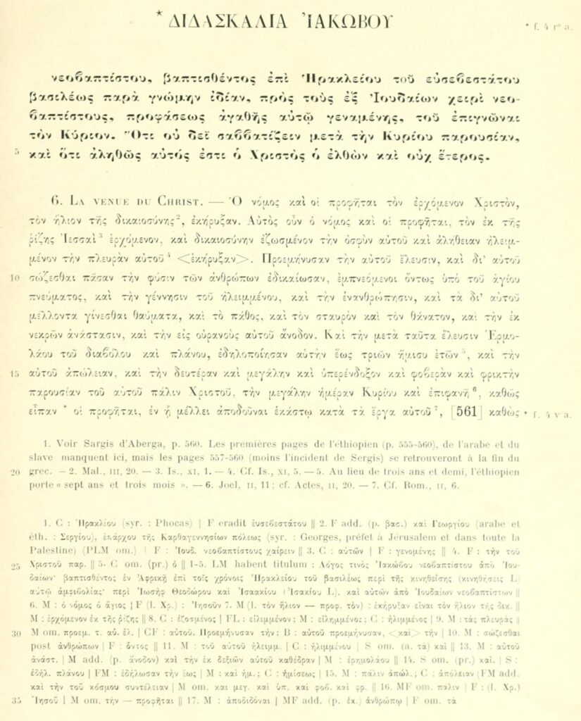 When people talk about the earliest records of Islam outside of Muslim tradition, most immediately think of later Byzantine or Latin chronicles. But few have heard of a remarkable Greek text written in 634 AD, called the Doctrina Jacobi (“The Teaching of Jacob”).